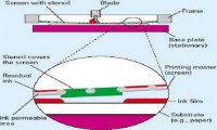 絲網(wǎng)印刷是將絲網(wǎng)緊繃于機床上,用適當?shù)牟牧虾头椒?,堵塞非圖文部分的網(wǎng)孔而成模板,然后倒油墨于框內(nèi)的網(wǎng)版上,在刮墨刀的刮動下,油墨即由圖文處的網(wǎng)孔漏印到承印物上。